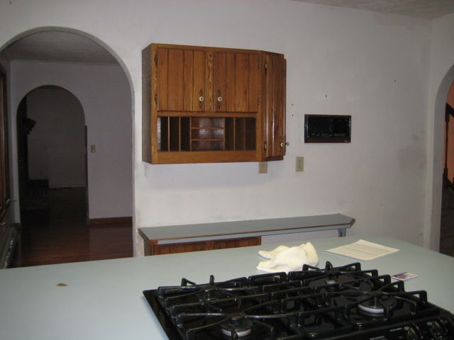 Again, another view of the wall that we had removed. Here you can get a glimpse of the only thing that survived the remodel – our gas stove.