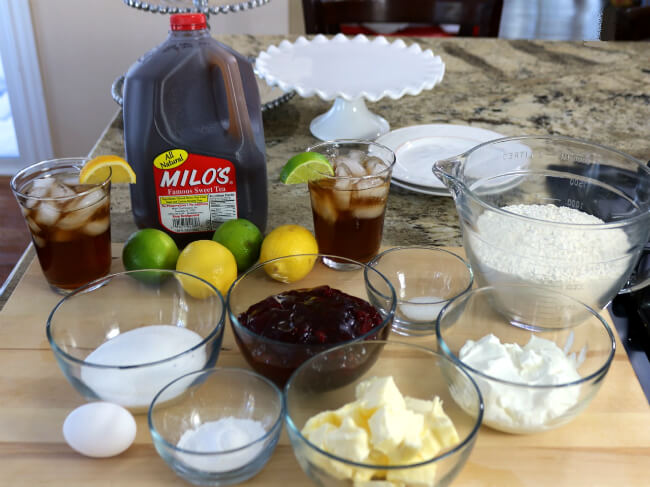 I prepared my scones two ways, and here I’ll share both. In one version I baked the raspberry pie filling right into the scone and in the other I cut the scone open and added the filling after baking. Both versions are perfect for serving up some southern style hospitality – especially when you serve them with Milo’s Sweet Tea.