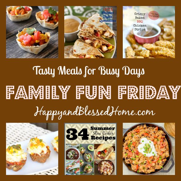 Every week at HappyandBlessedHome.com we share the talents and top posts from our blogging friends all around the web with HappyandBlessedHome.com readers via: Family Fun Friday. The Family Fun Friday Team reviews 200 link-ups to select the top features in the following categories: Encouraging Posts for Moms, Recipes, Family Fun, and Homeschooling. Every week is different and is tailored to the trends that are current to help moms save time and energy so they can have more freedom to do what they love best – enjoy family fun!