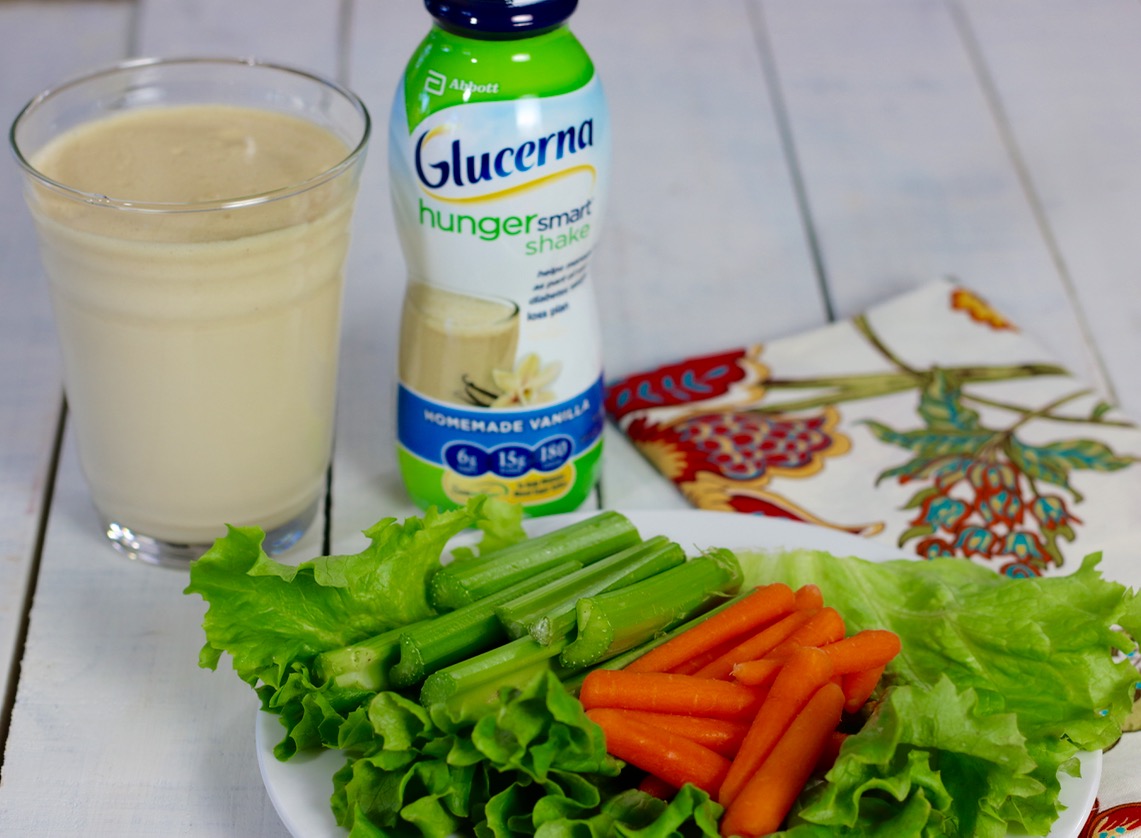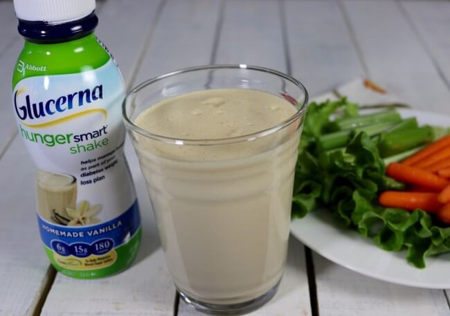 - One Hunger Smart Shake – comes in Glucerna Hunger Smart 4pk Homemade Vanilla (180 calories with 25 essential vitamins and nutrients)