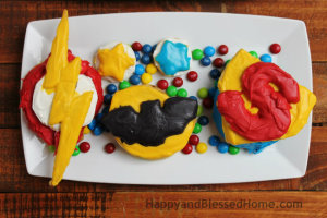 Create your own Superhero Breakfast with Pepperidge Farm Sweet Rolls with Flash Batman and Superman from HappyandBlessedHome.com