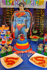 Fun Birthday Party Food – Everyone loved the Superman Pizza at our Superman Birthday Party by HappyandBlessedHome