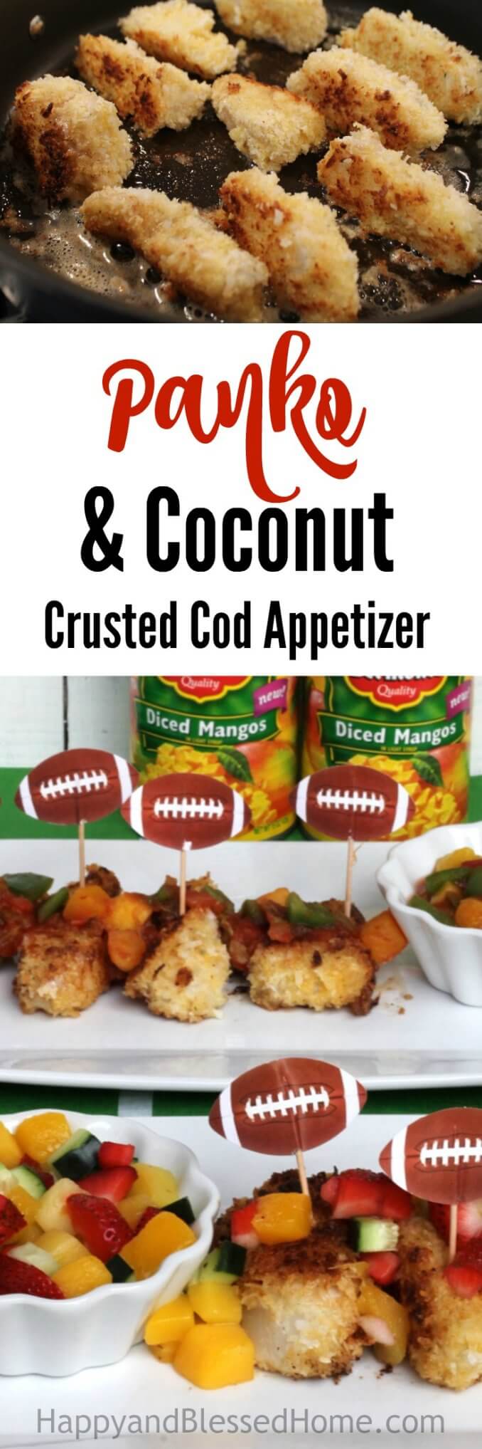 Here I’m sharing my Panko and Coconut Crusted Cod with two types of mango salsa recipes. One version will satisfy your party guests who love savory flavors, and the other will make your friends who love sweet flavors very happy.