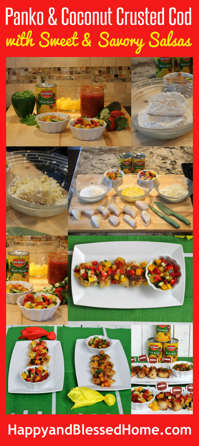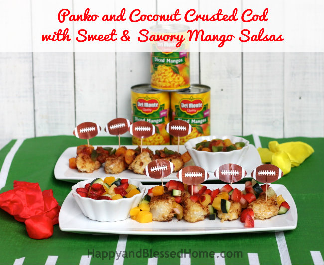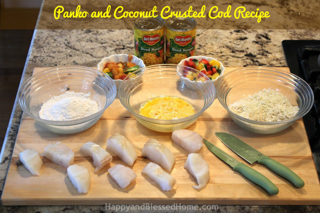 To download a FREE Printable copy of this Panko and Coconut Crusted Cod and Sweet and Savory Mango Recipes please click the blue link below. Panko and Coconut Crusted Cod and Mango Salsa Recipes from HappyandBlessedHome