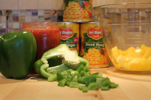 1. Wash bell peppers thoroughly. Dice bell peppers into small chunks.