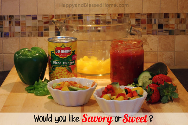 So now, you’ll have two options to offer, and all you have to ask your friends is, “Would you like savory or sweet salsa with your dish?”