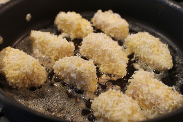 10. Step 10 – Fry the fish in the pan approx. 4 -5 minutes on each side for a total of 16-20 minutes. You want to brown it to a crisp brown panko and coconut coated exterior. If you are unsure, use a thermometer to take the internal temperature of the fish. Make sure the internal temp reaches 165 degrees to ensure it’s ready.