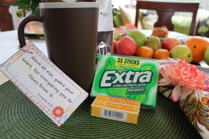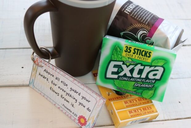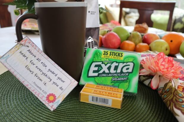 I created two different teacher appreciation gifts with these 24 Encouraging Cards. The first is a”coffee lover’s gift” and the second is a”beauty inspired” gift. I found some new Extra® 35-stick packs at Kroger and thought they would make the perfect focal point for these Teacher Appreciation Gifts. The Extra® 35-stick packs have a durable, recycled packaging that includes more gum than the regular 15 stick packs. Plus, they’re convenient to keep and split between your desk and your purse and come in fresh flavors like Spearmint and Polar Ice®.