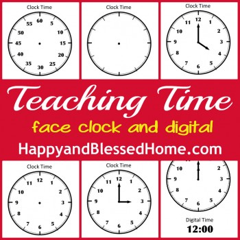 There’s more than meets the eye going on with this Teaching Children to Tell Time printable set. Teaching young to manage their time is an all-important life skill! One of the things I really want to help my kids understand is how to tell time. We use a count-down method to ease them into transitions. For instance, a half hour before bed time we’ll say, “Almost Bedtime.” Five minutes before bedtime we’ll even go so far as to set the kitchen timer on the microwave for five minutes and tell our kids, “Five minutes till bedtime.” So far, counting down like this has reduced melt-downs and helped introduce our kids to the concept of telling time.