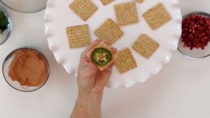 Step3: Spread 1 teaspoonful of bean dip onto a Triscuit.