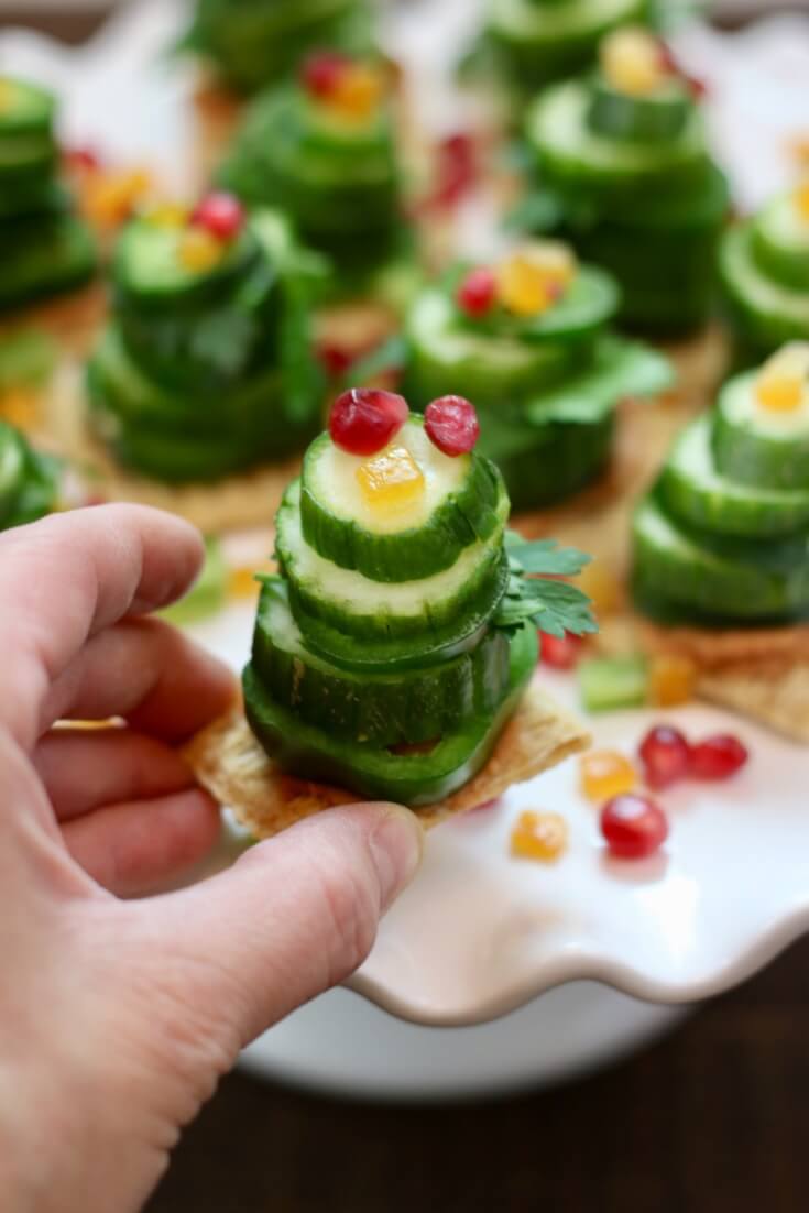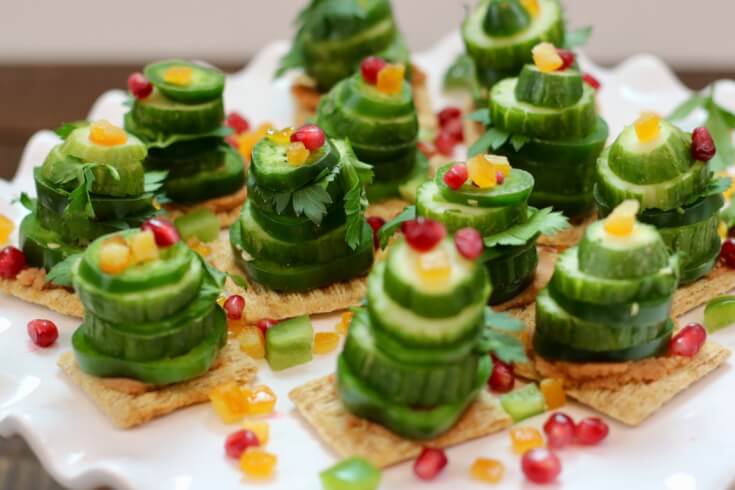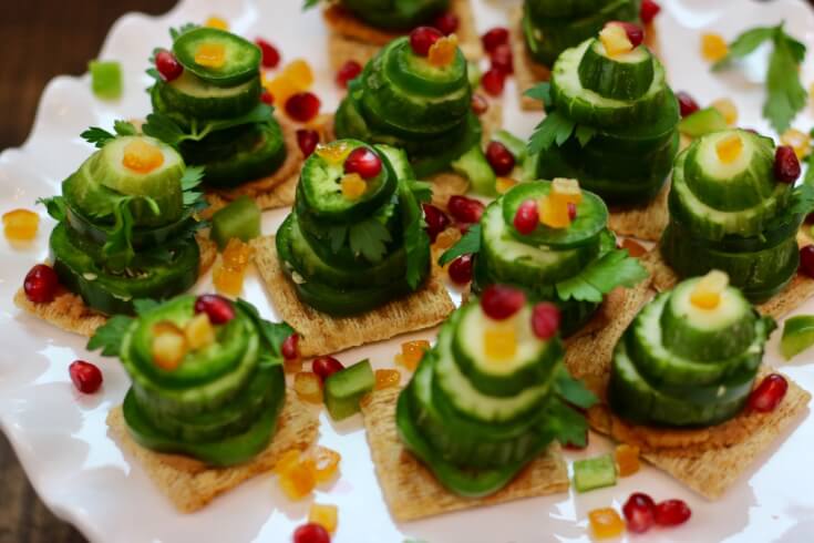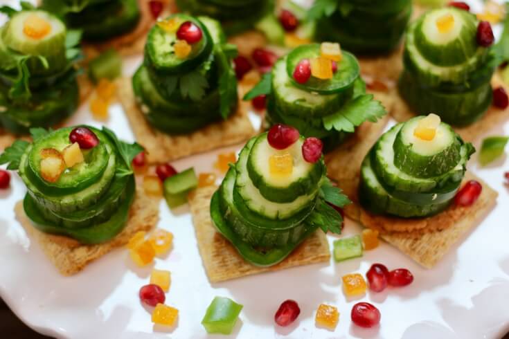 Best of all, is the look on your guests faces when they see you’ve made tiny Vegetable Stack Christmas Trees that they can eat. Serve these with a side of extra Triscuit crackers and bean dip in case your guests want to halve their trees and eat fewer slices of veggies and more Triscuit.